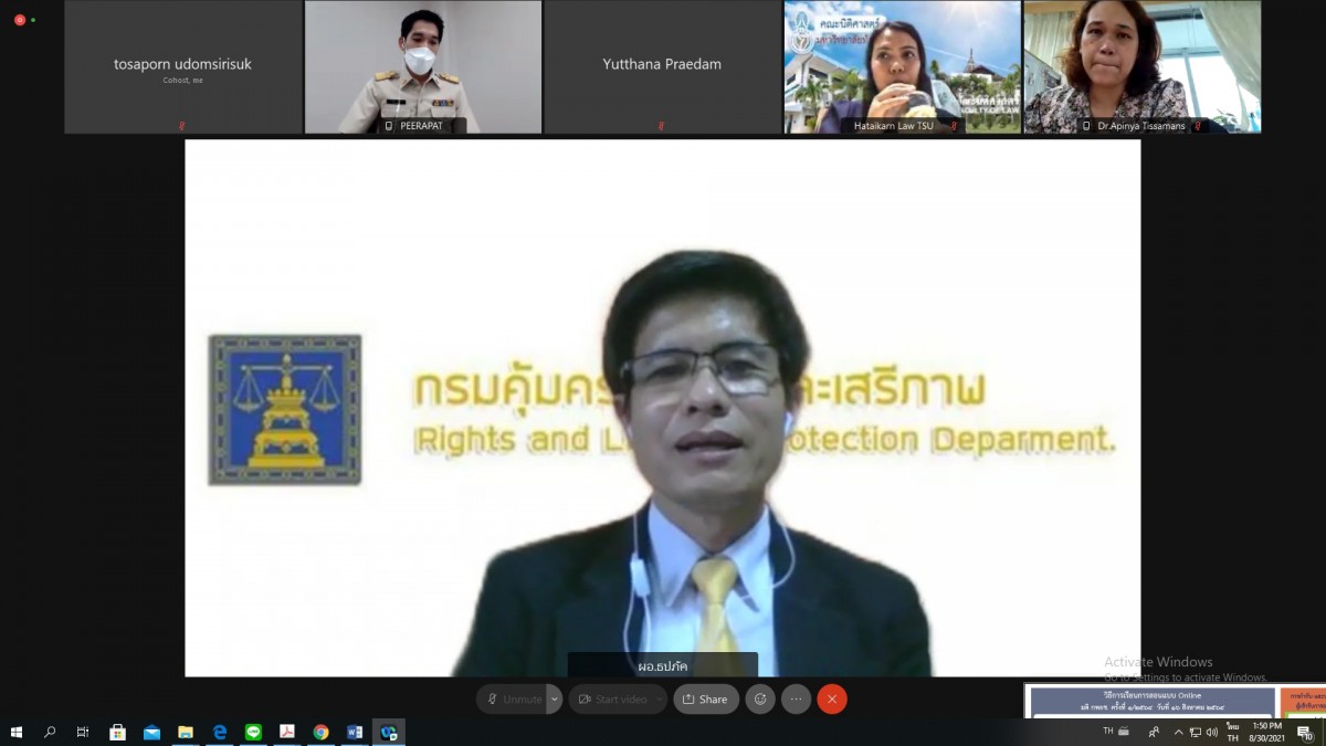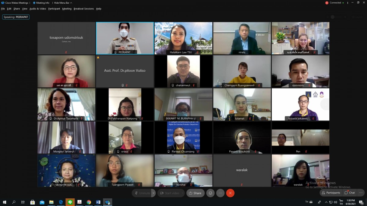 วันจันทร์ที่ 30 สิงหาคม 2564 เวลา 13.30 น. กรมคุ้มครองสิทธิและเสรีภาพ โดยกองส่งเสริมการระงับข้อพิพาท จัดประชุมชี้แจงแนวทางการจัดอบรมหลักสูตรอบรมการไกล่เกลี่ยข้อพิพาท ตามพระราชบัญญัติการไกล่เกลี่ยข้อพิพาท พ.ศ. 2562 กับ หน่วยงานที่ได้รับอนุญาตให้นำหลักสูตรอบรมการไกล่เกลี่ยข้อพิพาท ตามพระราชบัญญัติฯ ไปจัดอบรม ผ่านทางออนไลน์ระบบ Cisco Webex Meetings โดยมี พันตำรวจตรี ยุทธนา แพรดำ รองอธิบดีกรมคุ้มครองสิทธิและเสรีภาพ ประธานคณะทำงาน กำกับ ติดตามและประเมินผลหลักสูตรอบรมการไกล่เกลี่ยข้อพิพาท ตามพระราชบัญญัติฯ เป็นประธาน และได้รับเกียรติจาก ศ.นพ.วันชัย วัฒนศัพท์ ที่ปรึกษาคณะกรรมการขับเคลื่อนนโยบายความสุจริตทางวิชาการเพื่อนำไปสู่การเจรจาไกล่เกลี่ย และผู้บริหารโรงเรียนพัฒนาผู้นำและสร้างสันติธรรม รักสคูล พร้อมด้วย ดร.ธปภัค บูรณะสิงห์ ผู้อำนวยการกองส่งเสริมการระงับข้อพิพาท และเจ้าหน้าที่ที่เกี่ยวข้อง เข้าร่วม