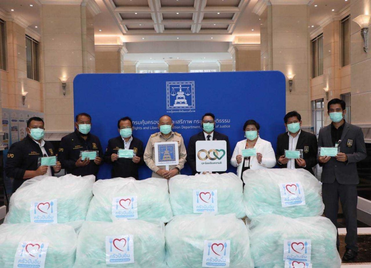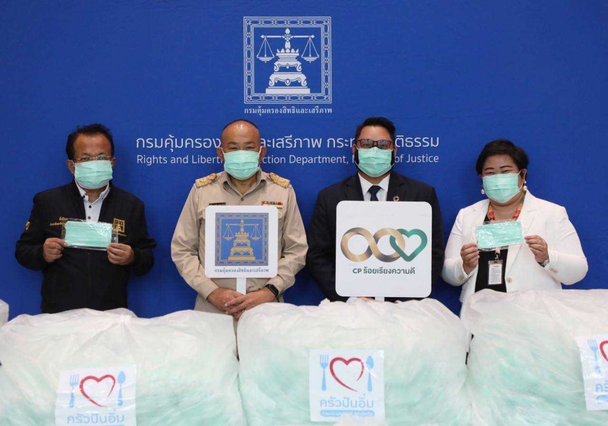 วันจันทร์ที่ 30 สิงหาคม 2564 เวลา 12.00 น. คุณเรืองศักดิ์ สุวารี อธิบดีกรมคุ้มครองสิทธิและเสรีภาพ มอบหมายให้ คุณเกิดโชค เกษมวงศ์จิตร รองอธิบดีกรมคุ้มครองสิทธิและเสรีภาพ พร้อมด้วย ดร.นิพัทธ์พนธ์ สุวรรณชนะ ที่ปรึกษากรมคุ้มครองสิทธิและเสรีภาพ คุณนรีลักษณ์ แพไชยภูมิ ผู้อำนวยการกองสิทธิมนุษยชนระหว่างประเทศ และคณะทำงานบริหารประจำศูนย์ไกล่เกลี่ยข้อพิพาทภาคประชาชน เป็นผู้แทนกรมคุ้มครองสิทธิและเสรีภาพ ในการรับและส่งมอบหน้ากากจำนวน 30,000 ชิ้น จากคุณวีระนนท์ ฟูตระกูล รองกรรมการผู้จัดการ สำนักความร่วมมือระหว่างประเทศ ด้านความยั่งยืนและสื่อสารองค์กร บริษัท เครือเจริญโภคภัณฑ์ จำกัด ภายใต้ โครงการ “ครัวปันอิ่ม ร้อยเรียงใจสู้ภัยโควิด-19 “ ที่ บริษัท เครือเจริญโภคภัณฑ์ จำกัด ร่วมกับ พันธมิตรกว่า 100 องค์กร ร่วมแรงร่วมใจให้ความช่วยเหลือผู้ได้รับผลกระทบจากสถานการณ์การแพร่ระบาดของโรคติดเชื้อไวรัสโคโรนา 2019 (COVID-19) ทั้งนี้ คณะทำงานบริหารประจำศูนย์ไกล่เกลี่ยข้อพิพาทภาคประชาชน จะดำเนินการส่งมอบหน้ากากให้กับชุมชนต่างๆ ทั่วกรุงเทพฯ ต่อไป
